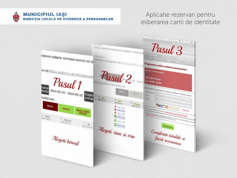 Dacă iniţial, la data de 1 august 2011, a fost deschis un singur ghişeu cu intervale de 10 minute/persoană în urma succesului înregistrat am decis modificarea aplicaţiei pentru a da posibilitatea unui număr mai mare de cetăţeni să facă rezervare într-o singură zi. Concret, în prezent, sunt disponibile 3 birouri special amenajate la care se pot programa 500 de persoane săptămânal pentru eliberarea unui nou act de identitate, intervalul fiind redus la 5 minute/persoană.